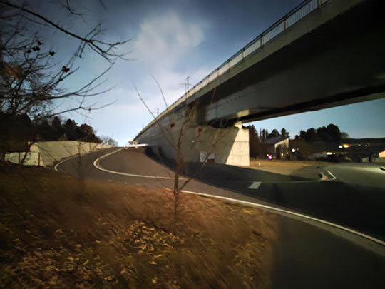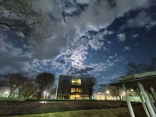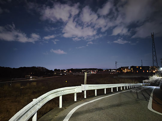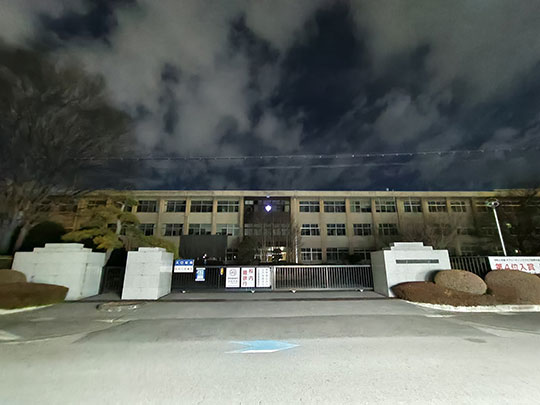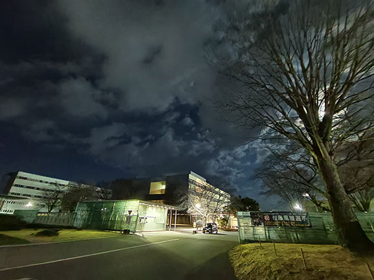 เมื่อลงมาก็มองเห็นมหาวิทยาลัยซากุชิงงากุเองอยู่ตรงหน้าเลย ขณะนั้นพระจันทร์เต็มดวงแต่เมฆเยอะบดบัง เลยได้ภาพที่ดูสวยไปอีกแบบ