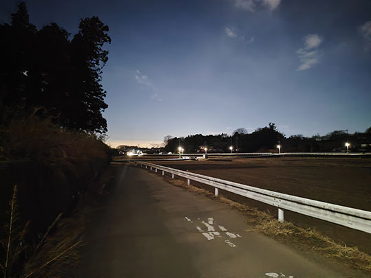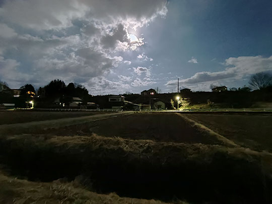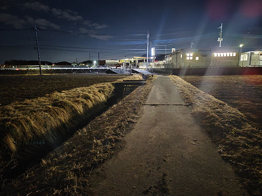 เดินผ่านท้องนาแถวย่านโคเตยามะใกล้มหาวิทยาลัยซากุชิงงากุอิงท่ามกลางความมืดในคืนที่หมู่เมฆบังพระจันทร์