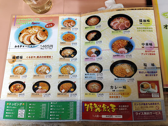 เมนู มีราเมงหลากหลาย โดยหลักแล้วเป็นราเมงมิโสะ