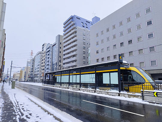 เดินมาถึงสถานีหน้าสวนสาธารณะเอกิฮิงาชิ จังหวะนั้นรถรางมาจอดที่สถานีพอดี