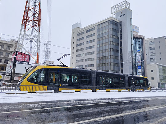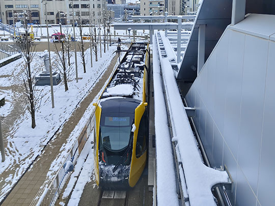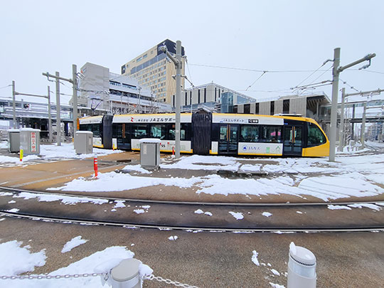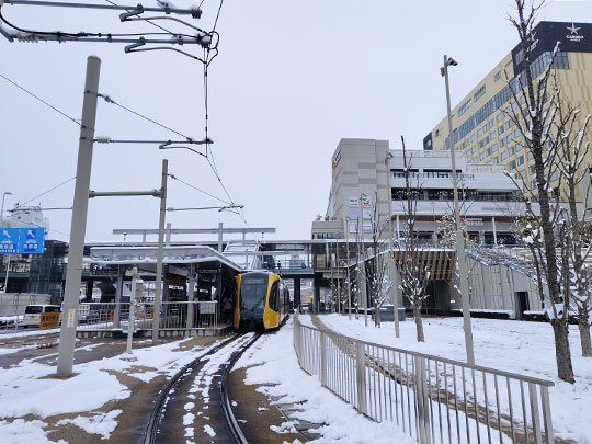 รถรางเข้าจอดที่สถานีหน้าสถานีอุตสึโนมิยะ