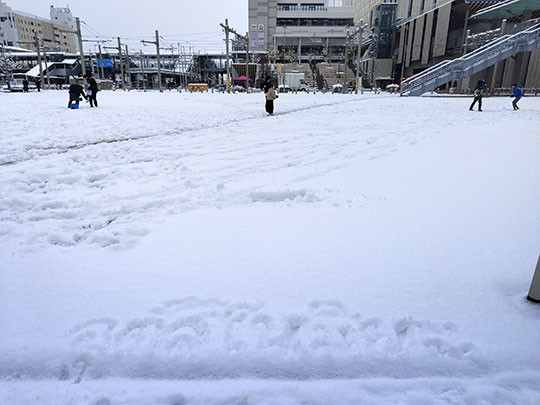 เมื่อมองไปเห็นคนมาเล่นหิมะกันอยู่อย่างสนุกสนาน เราเองก็ลองขีดเขียนพื้นหิมะเล่นสักหน่อย โดยเขียน "อุตสึโนมิยะ" ด้วยอักษรไทยลงไป แต่ก็เขียนได้ไม่ค่อยสวนเท่าไหร่