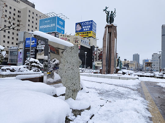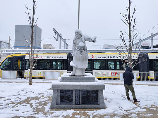 รูปปั้นเกี๊ยวซ่าท่ามกลางหิมะ