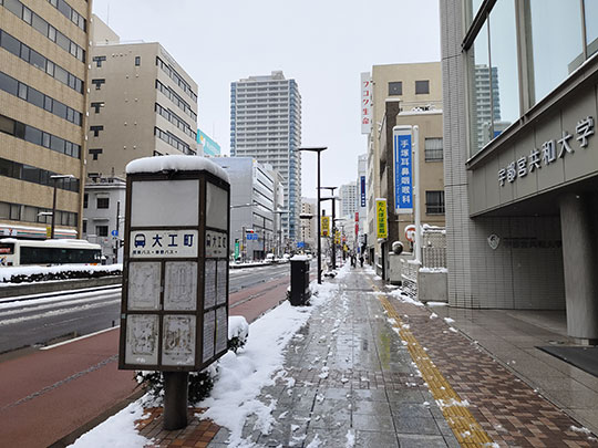 วันนี้ตื่นมามองนอกหน้าต่างก็พบทิวทัศน์ขาวโพลน เนื่องจากหิมะตกตั้งแต่เมื่อคืน แล้วจนถึงตอนเช้าก็ยังตกอยู่ อุณหภูมิก็ติดลบทำให้หิมะทับถมหนา ทำให้วันนี้ตัดสินใจออกไปเที่ยวเดินเล่นภายในเมืองเพื่อชมทิวทัศน์ที่ปกคลุมด้วยหิมะ