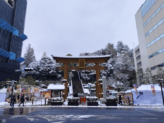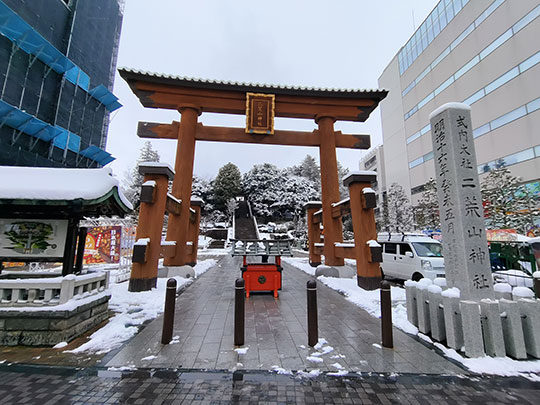 เดินผ่านใจกลางเมืองอุตสึโนมิยะไปยังศาลเจ้าฟุตาอารายามะท่ามกลางหิมะ