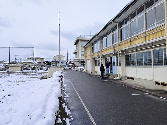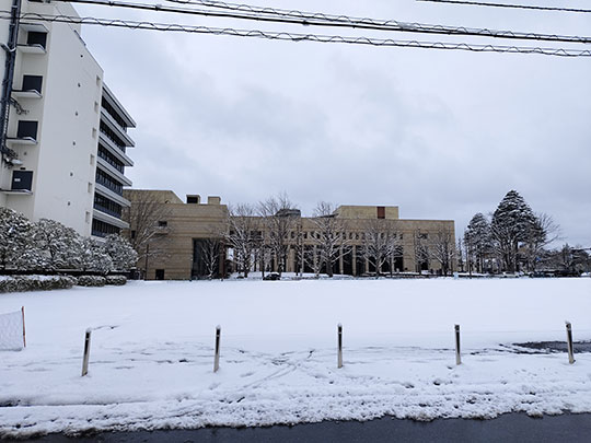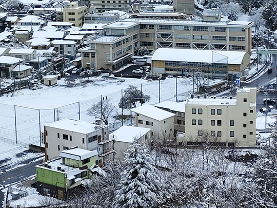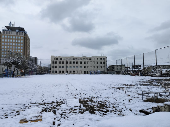 บริเวณสนามของโรงเรียนซึ่งตอนนี้ปกคลุมไปด้วยหิมะสวย