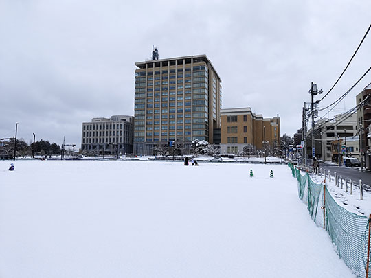 หลังจากออกศาลเจ้าฟุตาอารายามะมาทางตะวันตก ก็เจอลานกว้างขนาดใหญ่ที่ตอนนี้พื้นปกคลุมไปด้วยหิมะขาว และมองไปทางตะวันตกฝั่งตรงข้ามเป็นอาคาร
