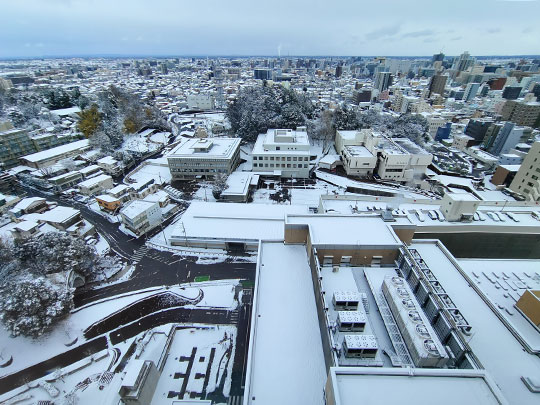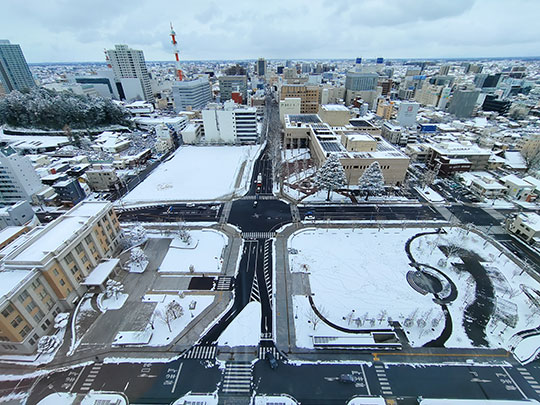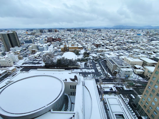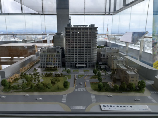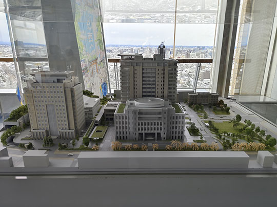 มองไปทางเหนือของลานกว้างก็คือกลุ่มอาคารที่ว่าการจังหวัดโทจิงิ โดยตรงกลางที่สูงที่สุดก็คืออาคารหลักที่มีจุดชมทิวทัศน์อยู่ข้างบน