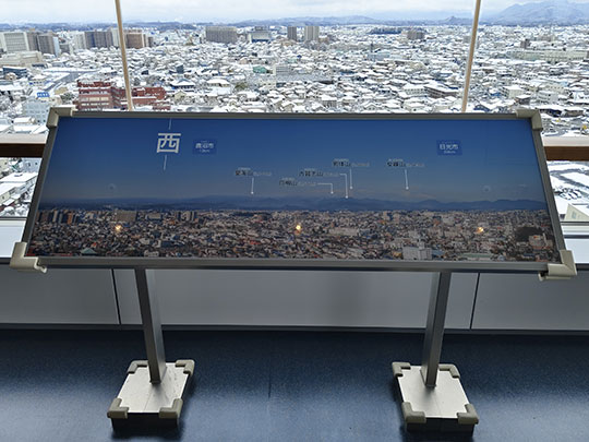 ที่เปิดให้ขึ้นไปได้มีแค่ชั้น ๑๕ ซึ่งทำเป็นสถานที่ท่องเที่ยวเท่านั้น สามารถขึ้นไปได้โดยใช้ลิฟต์ตรงนี้ หน้าลิฟต์มีสตรอว์เบอร์รีขนาดใหญ่อยู่ด้วย เพราะจังหวัดโทจิงิขึ้นชื่อในฐานะแหล่งผลิตสตรอว์เบอร์รีที่ใหญ่ที่สุดในญี่ปุ่น