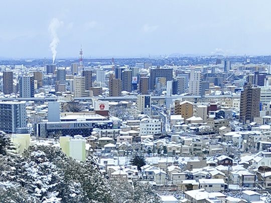 ทิวทัศน์ที่เห็นเมื่อมองไปทางทิศตะวันตก ซึ่งเป็นทิศตรงกันข้ามกับใจกลางเมือง แต่มองไปแล้วก็ยังเห็นอาคารบ้านเมืองแผ่ไปอีกไกล แสดงให้เห็นว่าอาณาเขตของเมืองนี้กว้างใหญ่และไม่สิ้นสุดง่ายๆ มองไกลออกไปจึงเห็นภูเขา