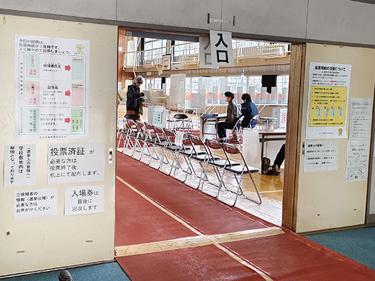 ปกติแล้วโรงเรียนประถมจะไม่ให้คนที่ไม่เกี่ยวข้องเข้าไปได้อย่างอิสระ แต่ว่าวันนี้เป็นวันเลือกตั้ง จึงเปิดให้เข้าไปได้ตามสบาย