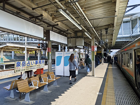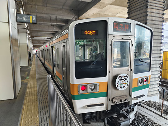 ครั้งนี้ไม่ได้ออกนอกสถานี แต่เดินมาเปลี่ยนรถไปทางสายเรียวโมว ได้รถไฟรอบ 11:02 รถไฟสายนี้มีประมาณชั่วโมงละรอบเท่านั้น ทั้งหมดมีปลายทางที่