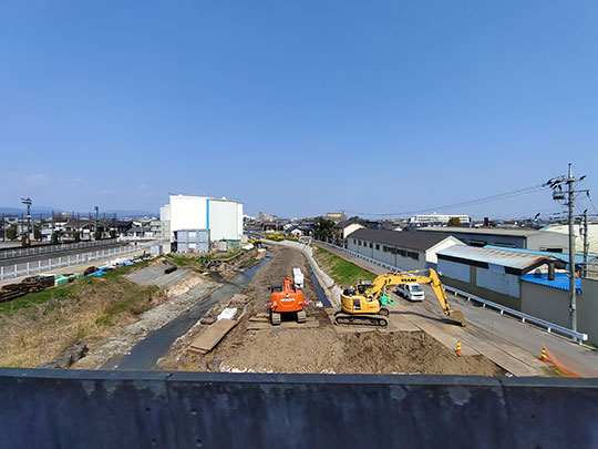 มองไปทางตะวันออกเฉียงใต้มีอีกสะพาน ตรงนั้นเป็นสะพานสำหรับทางรถไฟสายซาโนะ
