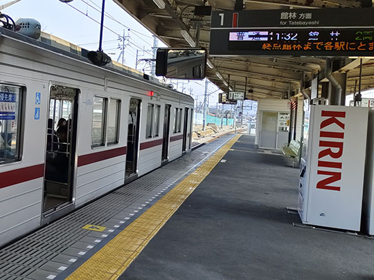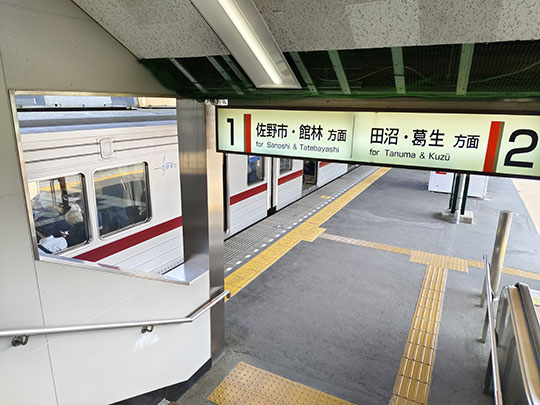 แต่เรายังไม่ออกจากสถานี แต่มาเปลี่ยนรถไฟไปยังรถไฟสายซาโนะของโทวบุ โดยมีเวลาแค่ ๓ นาทีในการเปลี่ยนรถไฟ โดยรถไฟที่นั่งมาถึงสถานีซาโนะเวลา 11:29 และรถไฟที่จะเปลี่ยนออกเวลา 11:32 ทำให้ต้องรีบมากทีเดียว