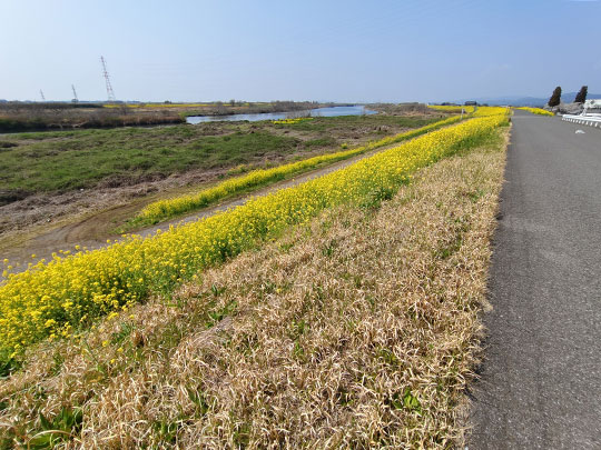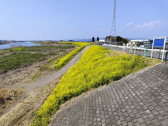 ริมแม่น้ำวาตาราเสะมีดอกนาโนฮานะบานอยู่เต็มไปหมดสวยงาม
