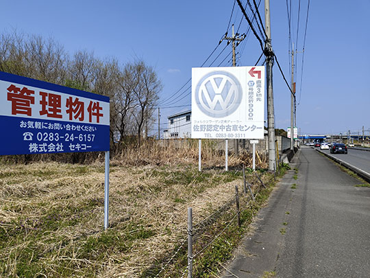 ตรงนี้มีป้ายของศูนย์รถมือสองของฟ็อลคส์วาเกินด้วย แต่เขียนว่าอยู่ห่างไป ๓ กิโลเมตร