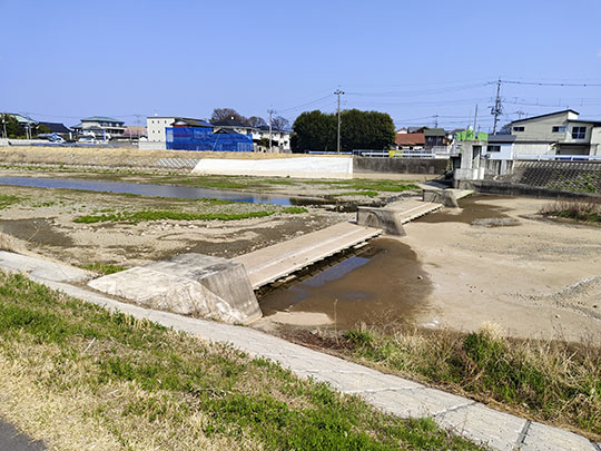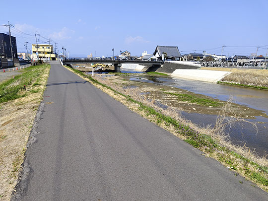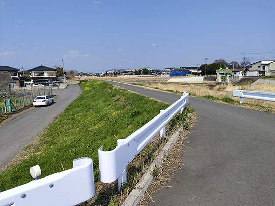 ตรงนี้เป็นเนินทางเดินเลียบแม่น้ำอากิยามะ (秋山川あきやまがわ) ซึ่งเป็นสาขาของแม่น้ำวาตาราเสะ ที่ไหลผ่านกลางเมืองซาโนะ