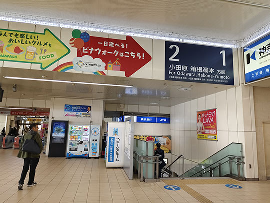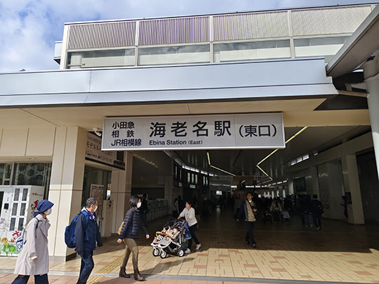 แล้วสถานีถัดไปก็คือสถานีเอบินะ (海老名駅えびなえき) ซึ่งเป็นสถานีหลักของเมือง เป็นสถานีสุดปลายของสายหลักโซวเทตสึ เราต้องลงมาที่สถานีนี้เพื่อเปลี่ยนรถไฟ