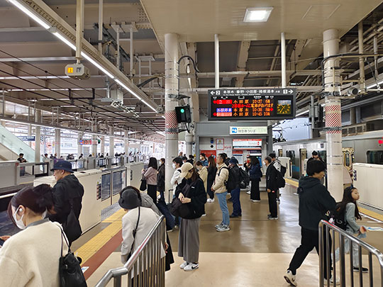 แต่ก็มีเวลาไม่มาก ออกมาดูนิดเดียวก็รีบกลับมายังสถานี โดยคราวนี้เข้าไปนั่งรถไฟสายโอดาวาระ (小田原線おだわらせん) ซึ่งก็เป็นรถไฟของโอดะกิวเหมือนที่นั่งมาถึงสถานียามาโตะ ที่จริงแล้วถ้าเราไม่อยากต้องเปลี่ยนรถไฟ ๒ ต่อละก็สามารถเลือกไปต่อรถที่สถานีซางามิโอโนะ (相模大野駅さがみおおのえき) ก็ได้ แต่ว่าระยะทางไกลกว่า ดังนั้นจึงเลือกใช้เส้นทางลัดผ่านทางรถไฟของโซวเทตสึ ประหยัดเวลาได้มากกว่า แม้จะต้องเสียค่ายใช้จ่ายเยอะกว่านิดหน่อยเพราะต้องเปลี่ยนรถไฟหลายต่อก็ตาม