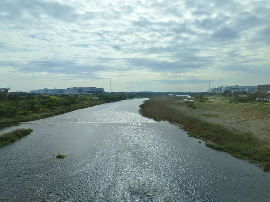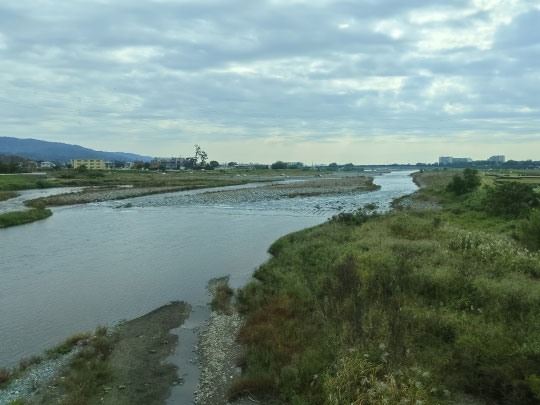 หลังออกจากสถานีมาก็ผ่านแม่น้ำซากาวะ (酒匂川さかわがわ)