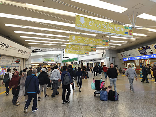 ก่อนอื่นต้องเดินผ่านที่ตรวจตั๋วออกมา บริเวณภายในอาคารสถานีที่เป็นจุดเชื่อมระหว่างทางรถไฟสายต่างๆนั้นดูกว้างใหญ่และคนพลุกพล่าน สมกับเป็นสถานีใจกลางที่เป็นจุดเปลี่ยนรถไฟหลายสาย ซึ่งรวมถึงชิงกันเซงด้วย และแถวนี้เองก็มีสถานที่เที่ยวเยอะด้วย