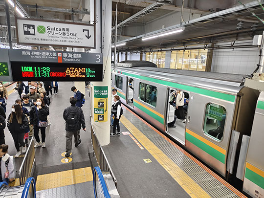 มาขึ้นรถไฟเพื่อไปต่อ รถไฟที่นั่งคราวนี้มีปลายทางอยู่ที่สถานีอาตามิ (熱海駅あたみえき) ของเมืองอาตามิ อยู่ถัดไปจากสถานียุงาวาระที่เป็นเป้าหมายครั้งนี้