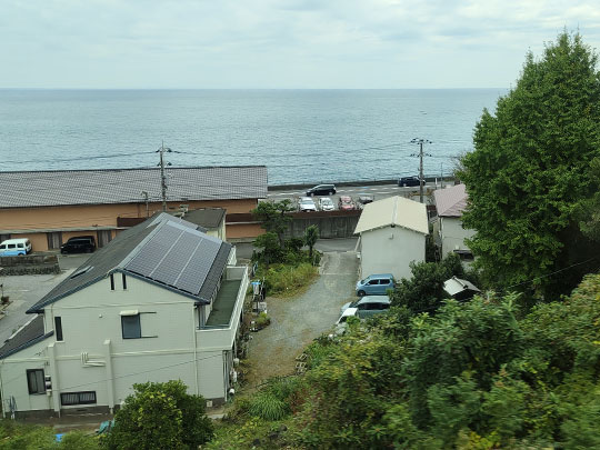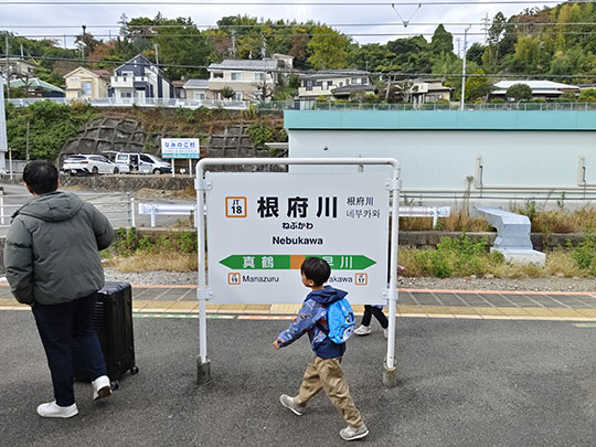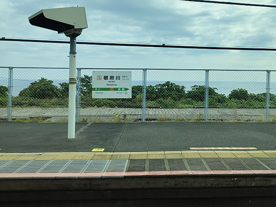 ต่อมาจอดที่สถานีเนบุกาวะ (根府川駅ねぶかわえき) จากชานชลานี้มองไปเห็นทะเลด้วย