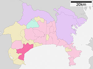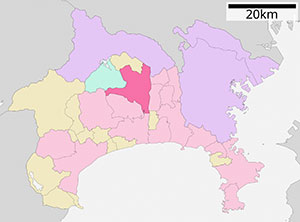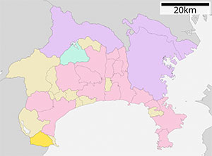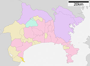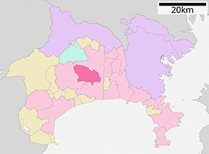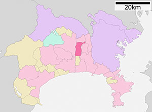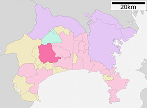 ตำแหน่งเมืองอัตสึงิแสดงเป็นสีชมพูเข้ม