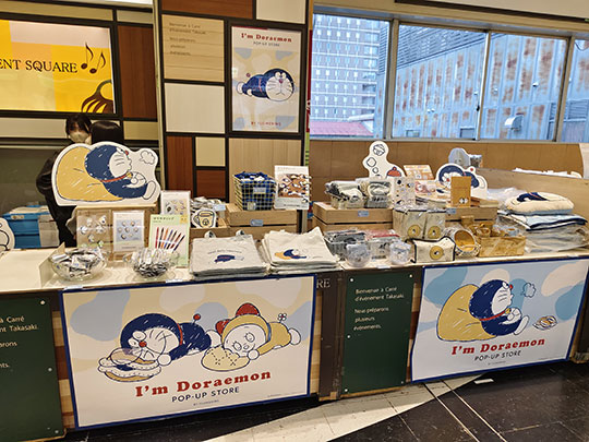 ภายในสถานีเห็นมีขายพวกเครื่องนอนโดราเอมอน