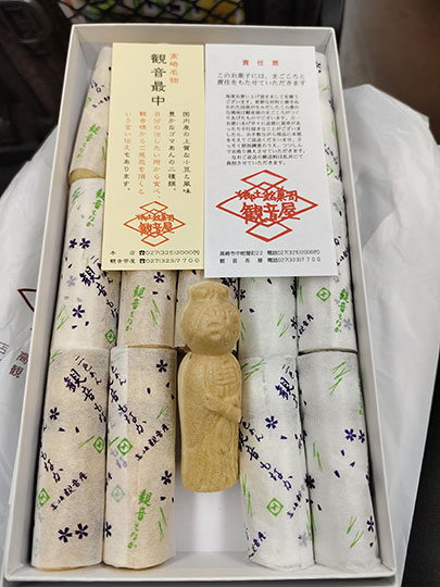 ขนมคันนงโมนากะที่ซื้อมาจากร้านตรงเข้าแม่กวนอิมไปเป็นของฝาก