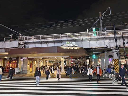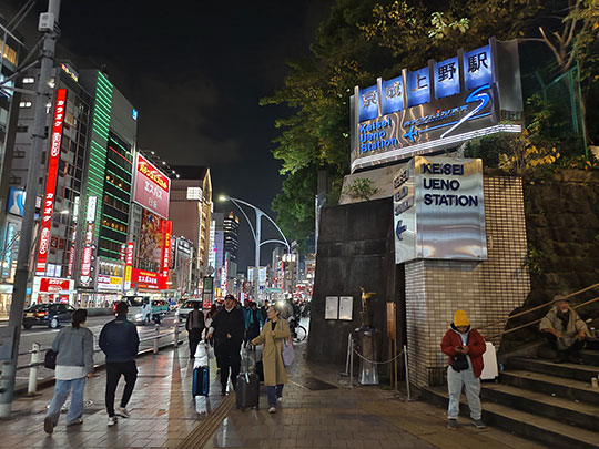 ระหว่างทางผ่านปากทางเข้าสถานีอุเอโนะของ JR อีกทาง ซึ่งเป็นทางเข้าที่ใกล้สถาเคย์เซย์ที่สุด ตอนเช้าเขาก็เข้าทางนี้หลังออกจากสถานีของเคย์เซย์ แต่ว่าครั้งนี้เราออกมาจากอีกทางแล้วจึงเดินมา
