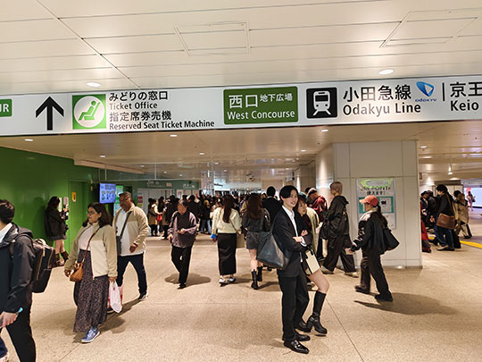 พอลงมาก็ต้องมาเผชิญกับเขาวงกต ทางแยกเต็มไปหมด สมกับที่ใครต่างก็เล่าลือกันว่าเป็นสถานีที่ซับซ้อนที่สุดในญี่ปุ่น แต่โดยรวมแล้วก็คือมองป้าย ยังไงก็ให้เดินไปตามป้ายที่เขียนว่า