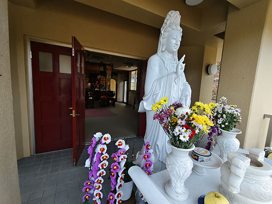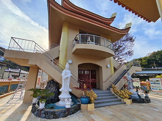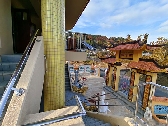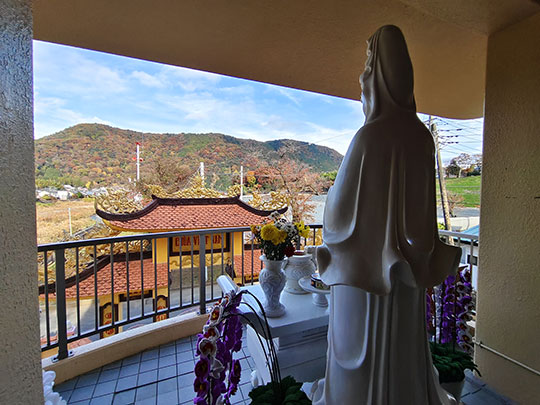 แต่เป้าหมายที่เราไปครั้งนี้คือวัดเวียดนามในย่านฮัมบาระ ซึ่งถือเป็นย่านท่องเที่ยวหลักของเมืองไอกาวะ แถวนี้มีชุมชนเวียดนามอยู่ จึงได้สร้างวัดนี้ขึ้นมาในปี 2006 ปัจจุบันนี้มีวัดเวียดนามในญี่ปุ่นอยู่หลายแห่ง แต่ว่าในจำนวนนั้นวัดเวียดนามแห่งไอกาวะนี้ถือว่าโดดเด่นที่สุด