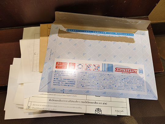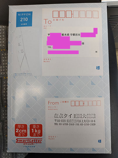 ซองจดหมายที่ส่งมาจากสถานทูตไทยที่โตเกียว ภาพนี้ถ่ายระหว่างนั่งรถรางไปยังสถานีอุตสึโนมิยะ