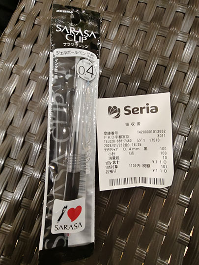 ตอนแรกคิดว่าจะจัดการกาบัตรภายในร้านเลย แต่นึกได้ว่าลืมปากกาเอาไว้ที่ที่ทำงานแล้ววันนี้ก็ไม่ได้ไปทำงาน ก็เลยตัดสินใจออกจากร้านแล้วไปหาซื้อปากกาใหม่ที่ร้านเซเรีย (セリア) ในห้าง ราคา ๑๑๐ เยน กลายเป็นเหมือนครั้งนี้อุตส่าห์ซื้อปากกาใหม่เพื่อกาบัตรเลือกตั้งโดยเฉพาะเลย