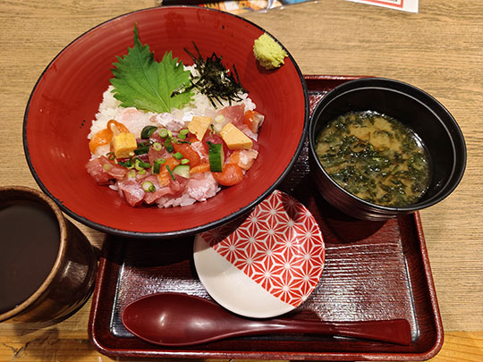 สั่งไคเซงอาราเระดง (海鮮かいせんあられどん) ๑๐๕๐​ เยน รสชาติดูธรรมดา ออกจะผิดหวังนิดหน่อย