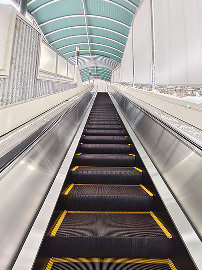 ทางขึ้นสู่บริเวณสนามเป็นบันไดเลื่อน