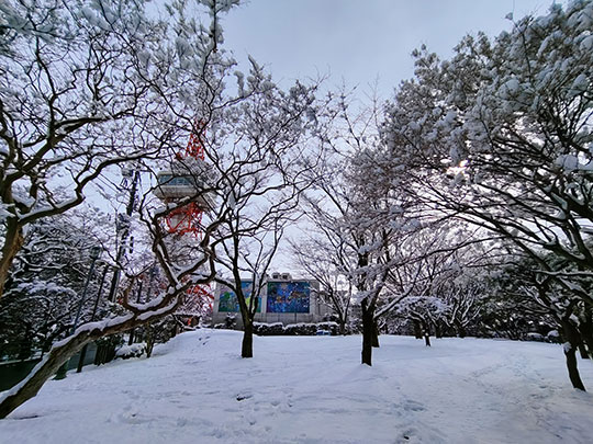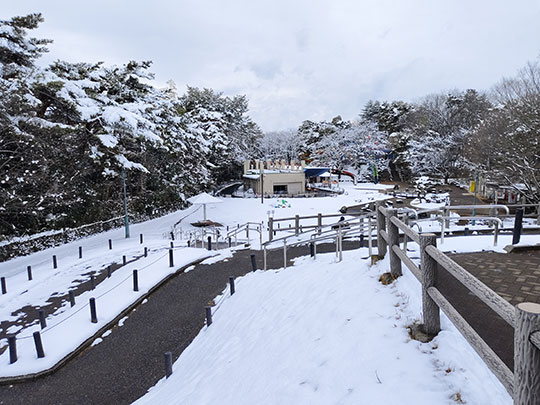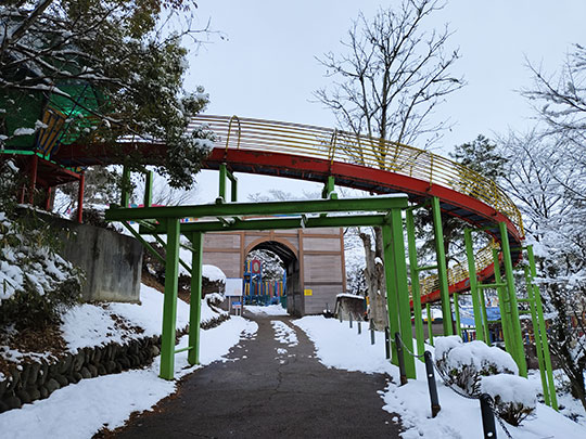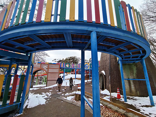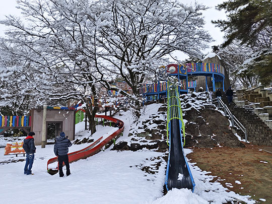 บริเวณนี้มีพวกเครื่องเล่น เป็นสนามเด็กเล่น แต่ตอนนี้ปกคลุมไปด้วยหิมะดูจะเล่นยาก แต่ก็เห็นคนมาเล่นกันในสภาพมีหิมะ ดูจะลื่นลงไม่ได้ตามปกติแต่ก็สนุกไปอีกแบบ