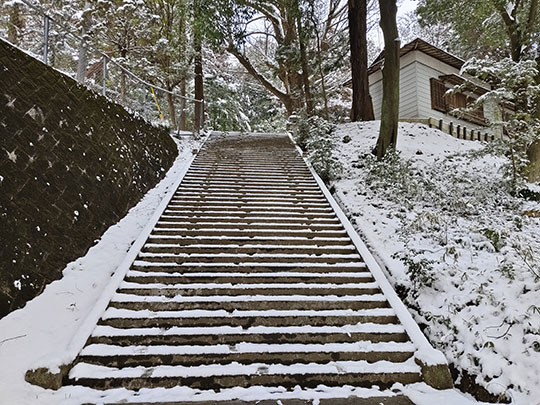 ชมศาลเจ้าเสร็จก็เดินลงจากบันได เป็นทั้งทางออกจากศาลเจ้าแล้วก็เป็นทางลงจากเขาด้วย