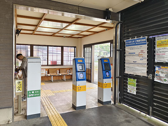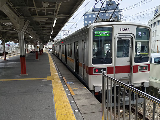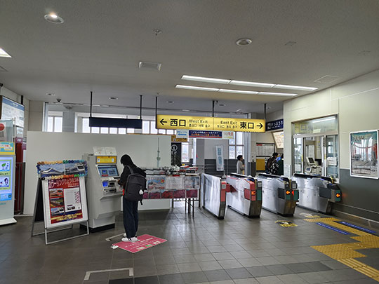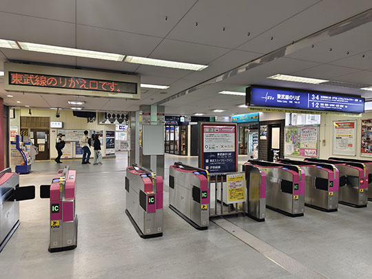 ก่อนอื่นต้องผ่านที่ตรวจตั๋วเพื่อเปลี่ยนจากส่วนของรถไฟ JR ไปยังส่วนของรถไฟโทวบุ