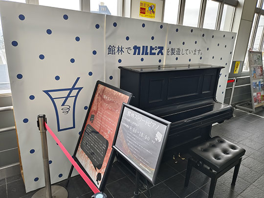 ฝั่งตะวันตกของสถานีดูจะไม่มีอะไรแล้ว เลยกลับเข้ามาในสถานีอีกที ระหว่างนั้นก็ดูในสถานีต่ออีกนิด ก็เจอเปียโนที่ฉากหลังเป็นป้ายคัลพิส ทำให้รู้ว่าเมืองนี้มีโรงงานผลิตคัลพิสแล้วก็มีพิพิธภัณฑ์คัลพิสอยู่ด้วย นี่ก็เป็นสถานที่เที่ยวอีกแห่ง