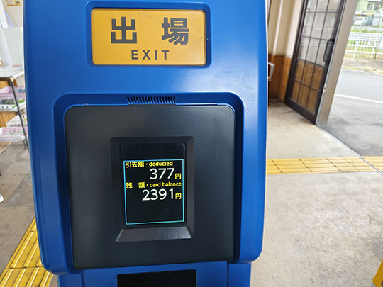 ค่าโดยสารตลอดสายจากสถานีทาเตบายาชิมาถึงที่นี่คือ ๓๗๗ เยน