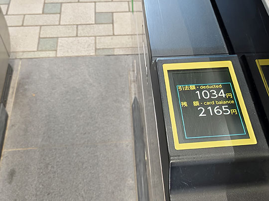 แตะบัตรออกมา ค่าเดินทาง ๑๐๓๔ เยน